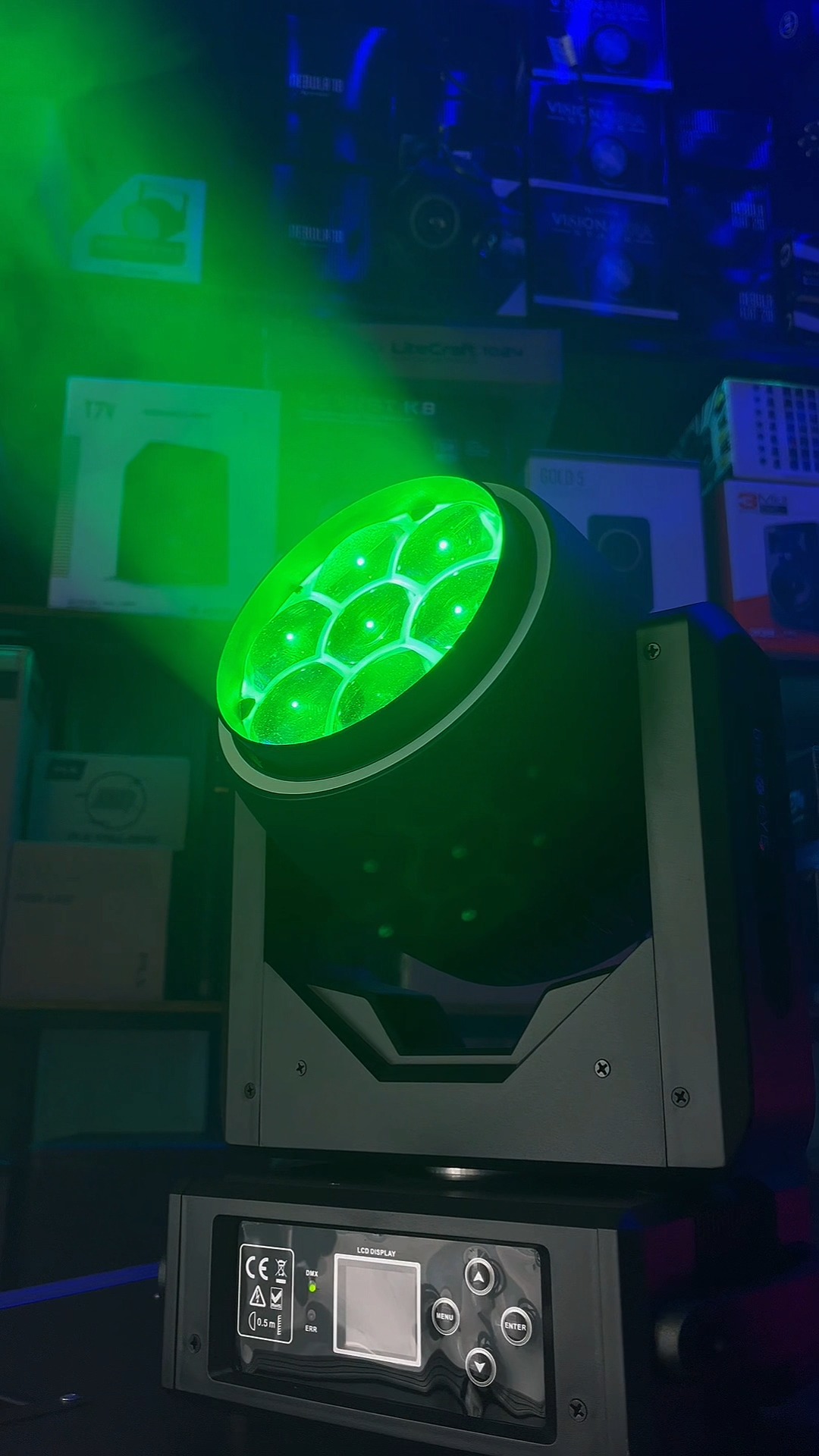 Potente y versátil, combina 7 LEDs RGBW de alta potencia con luz auxiliar. Efecto “Bee-eye” dinámico y mezcla de color precisa. Ideal para shows, escenarios y eventos profesionales.