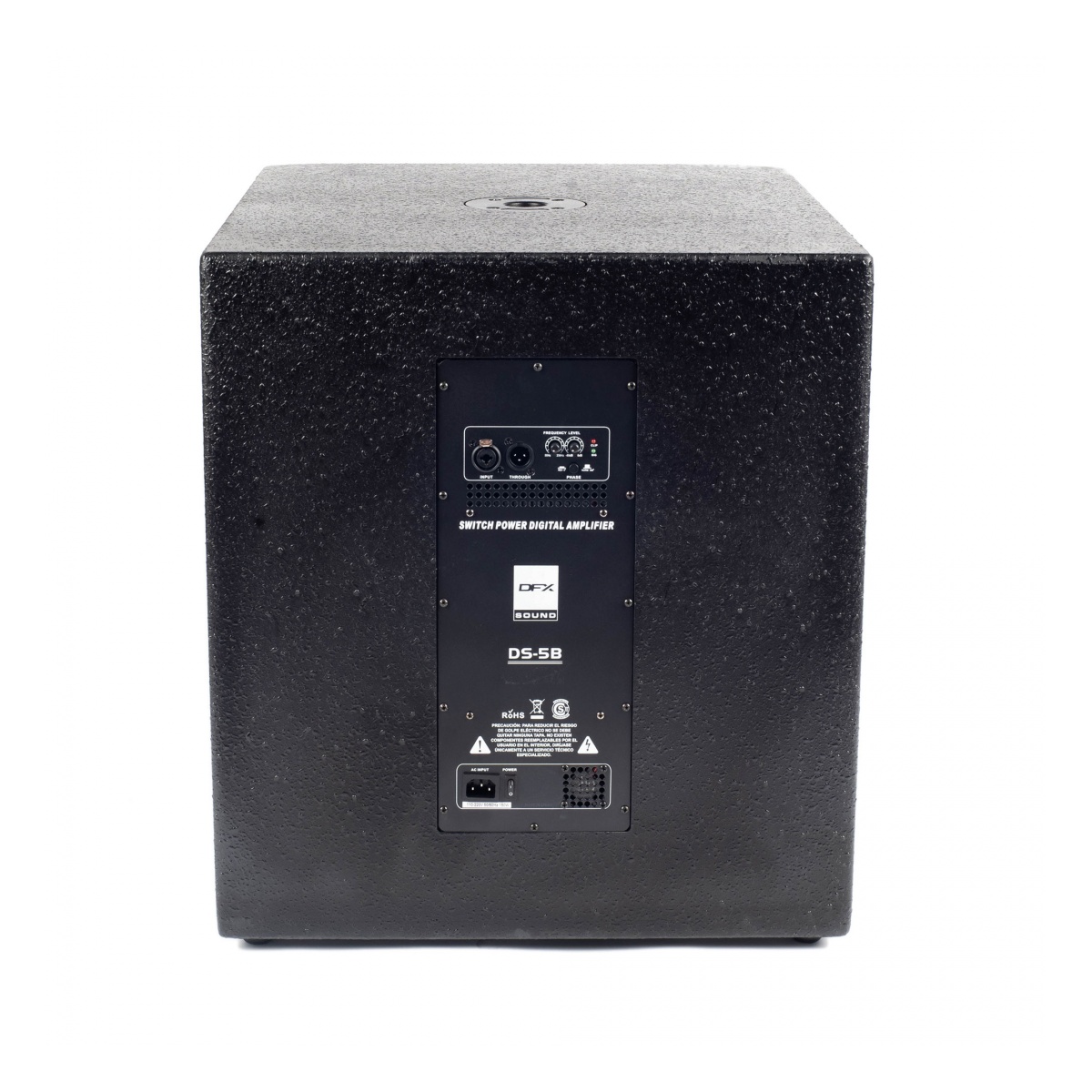 El gabinete, construido en aglomerado MDP de 18 mm con acabado texturado, ofrece gran resistencia y una proyección acústica equilibrada. Su respuesta en frecuencia de 38 Hz a 250 Hz asegura una cobertura completa de las bajas frecuencias, ideal para refuerzo de sonido en escenarios, eventos o sistemas portátiles.