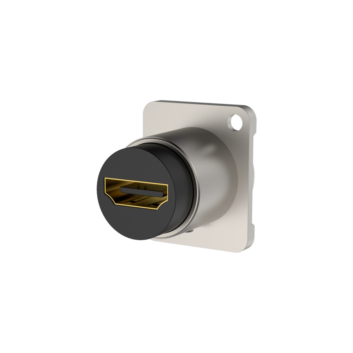 Adaptador HDMI 2.0 pasante para montaje en chasis, formato D-size. Permite extender conexiones HDMI a través de paneles, racks o cajas de conexión de forma profesional y segura.
