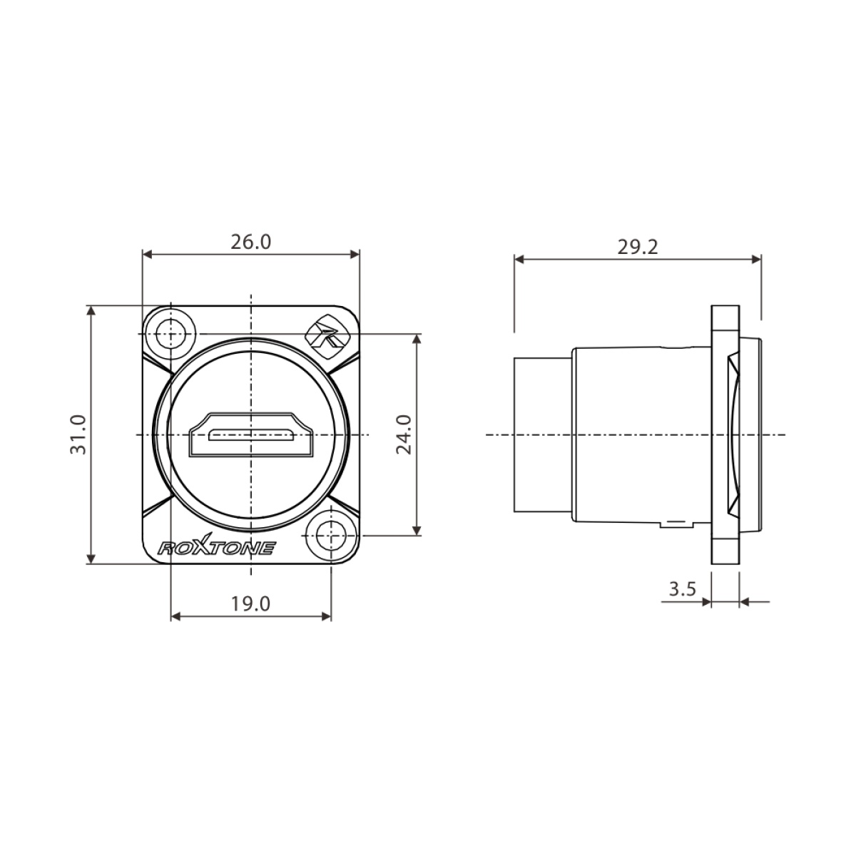 Roxtone RAH20D — Ficha Chasis HDMI 2.0 Feed Through
