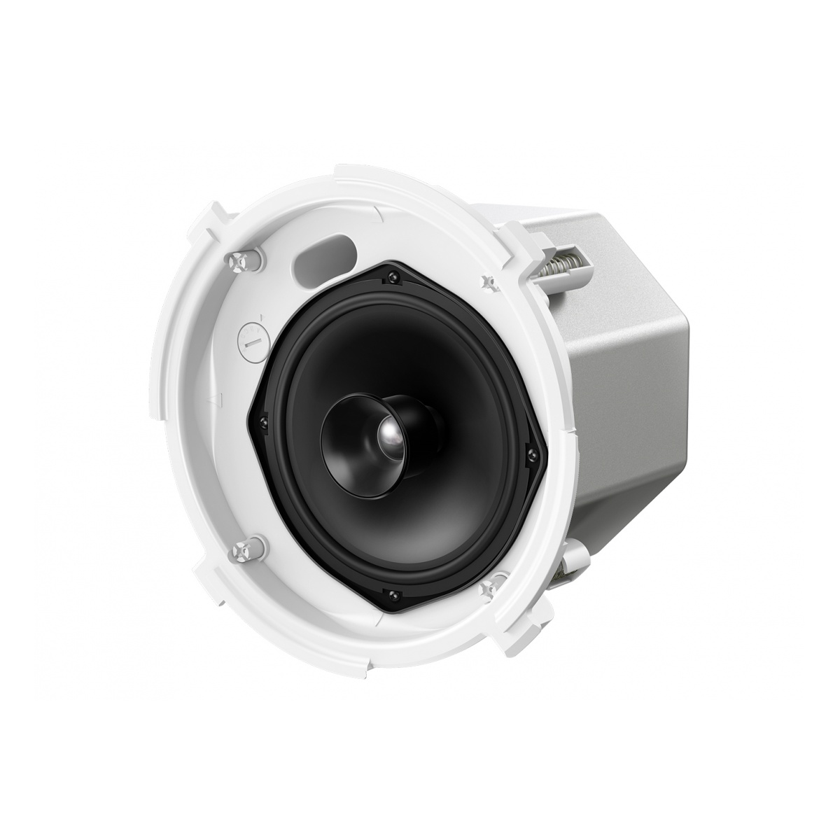 Para garantizar la seguridad, cada altavoz está equipado con una lengüeta de montaje en el techo con resorte de un solo toque, que también hace que la instalación sea sencilla.