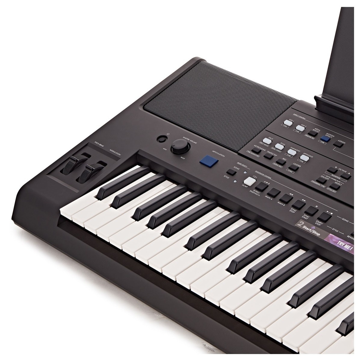 Una característica impresionante de este teclado son las voces Super Articulation Lite. Estos sonidos son una recreación de instrumentos que no son teclados y presentan pequeños detalles, como el movimiento de las cuerdas de una guitarra. El botón de efectos DSP también te permite aplicar efectos al sonido, añadiendo textura, tono y flexibilidad. Todos estos útiles elementos se complementan con una polifonía de 64 notas, que te proporciona una respuesta detallada y una experiencia de interpretación.